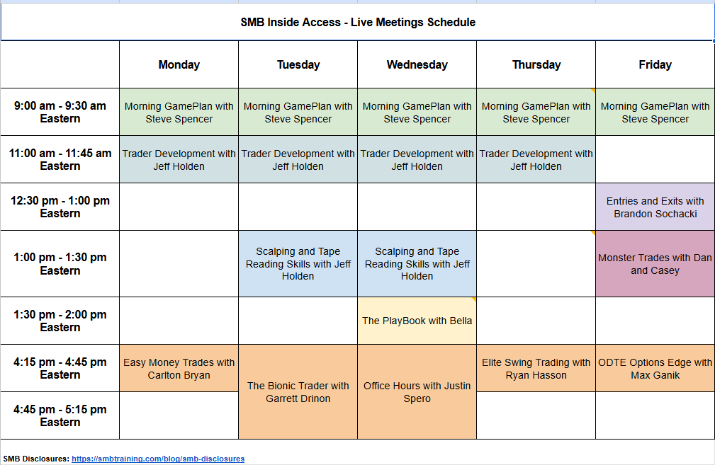 Important note: These meetings are ONLY available to SMB Inside Access subscribers. If you are a DNA, Winning Trader or Scalp Radar trainee, you have partial access to these meetings. Kindly open a ticket or reach out to our support team if you have any questions.