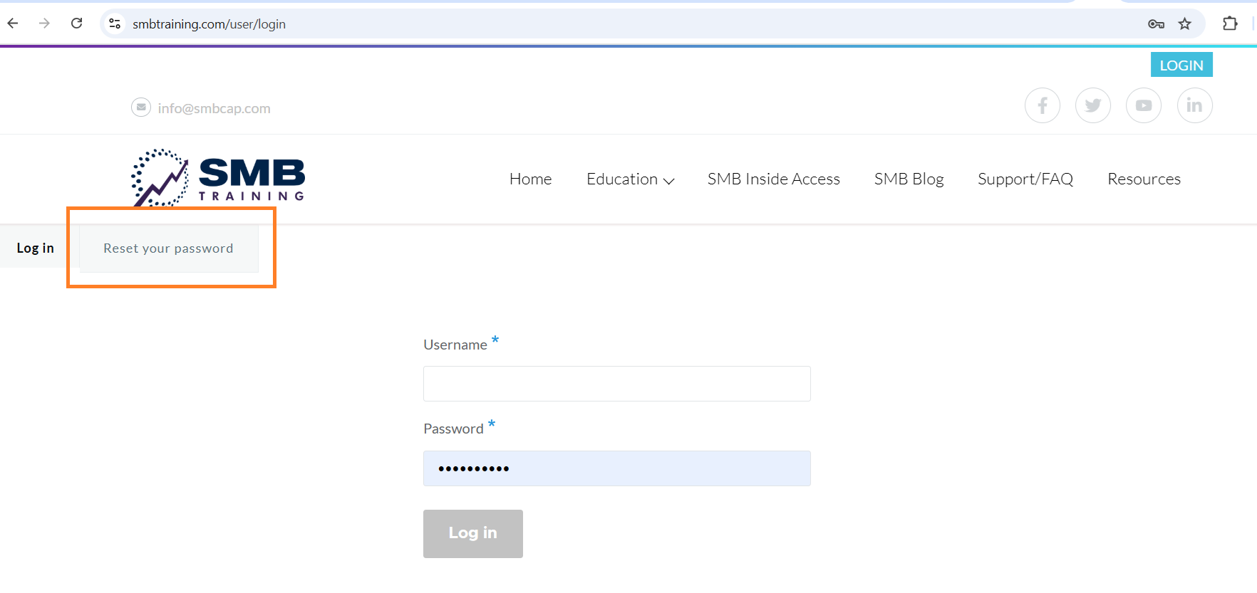 3. If you need to reset your password, attempt to log in and click the "Reset your password" link.