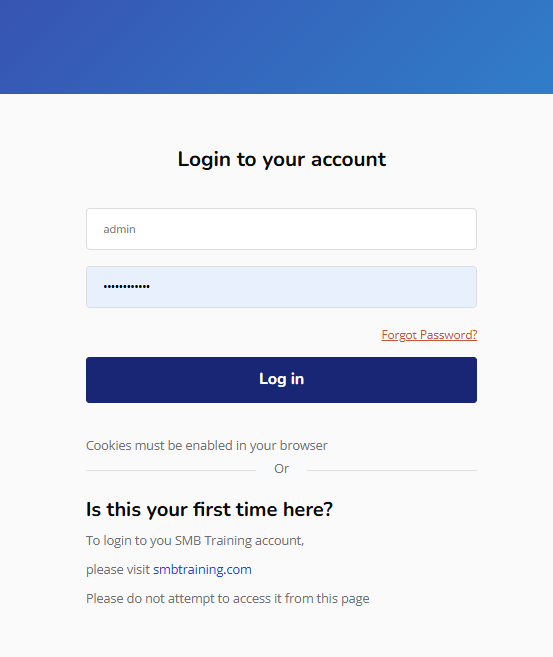 1. Are you entering the correct username? You can find your correct username displayed in the top right corner of the page whenever you log in to your SMBTraining.com account.